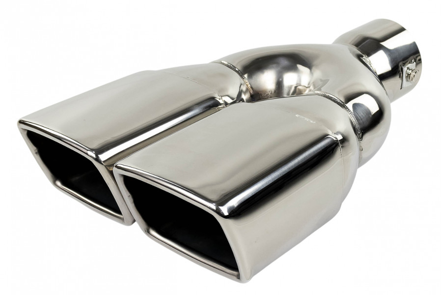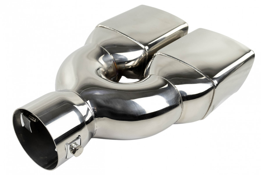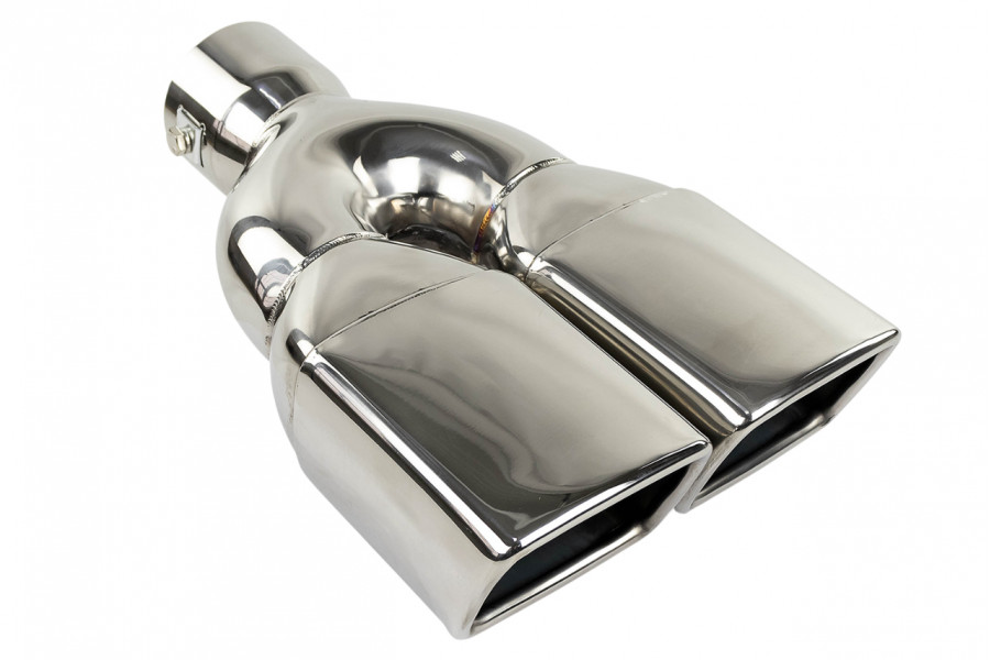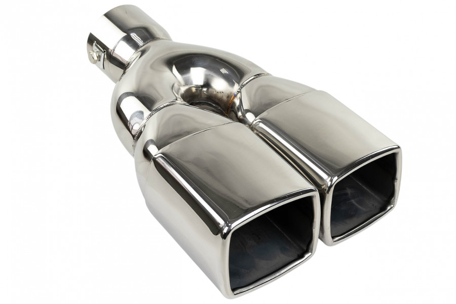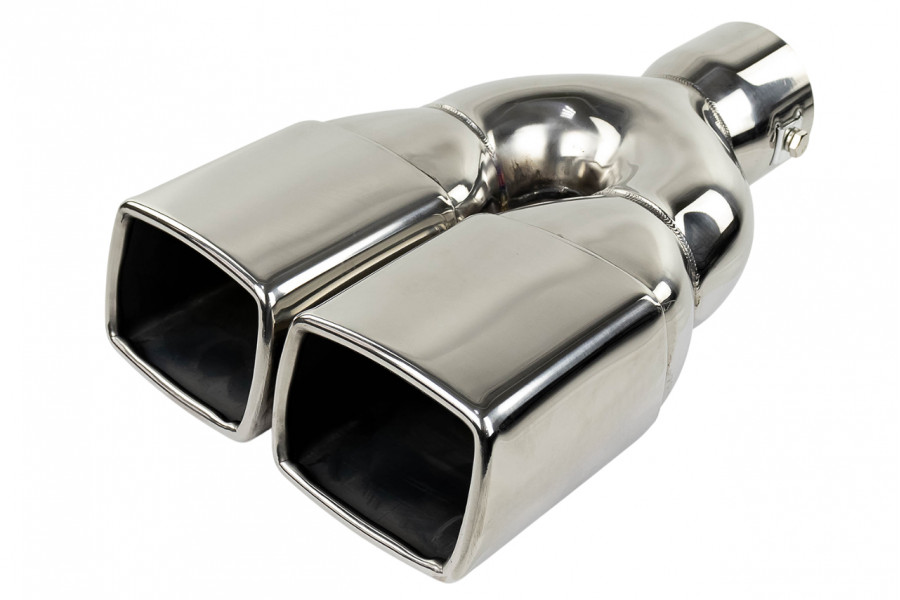 Раздвоенная квадратная насадка глушителя из нержавеющей cтали имеет скос и устойчива к окислению и коррозии.