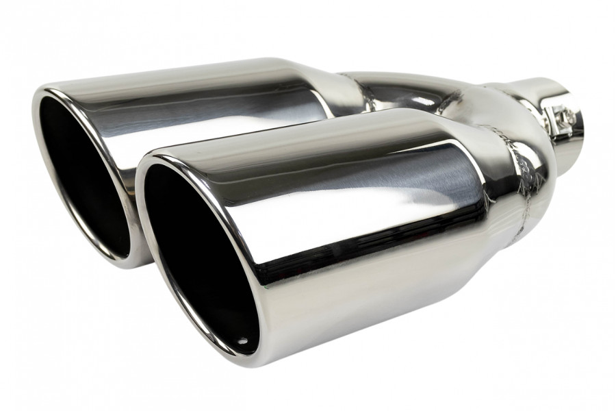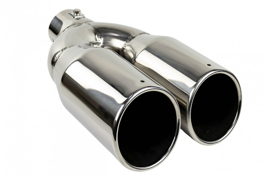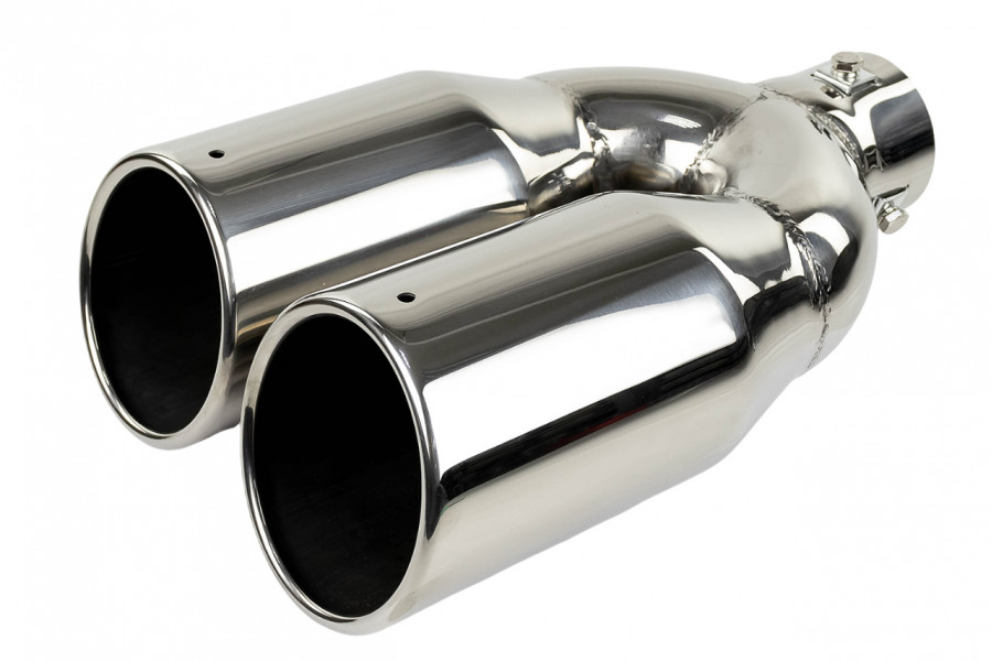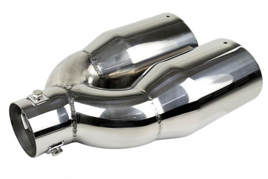 Раздвоенная насадка глушителя из нержавеющей cтали имеет скос и устойчива к окислению и коррозии.