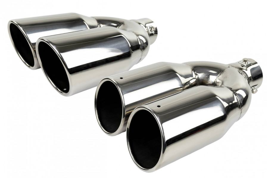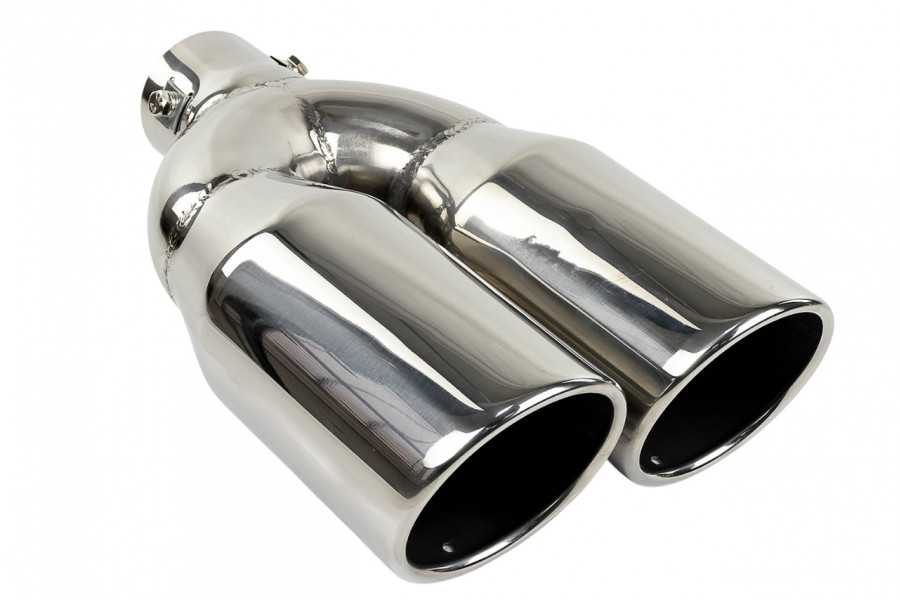 Раздвоенные насадки глушителя из нержавеющей cтали имеют скос и устойчивы к окислению и коррозии.