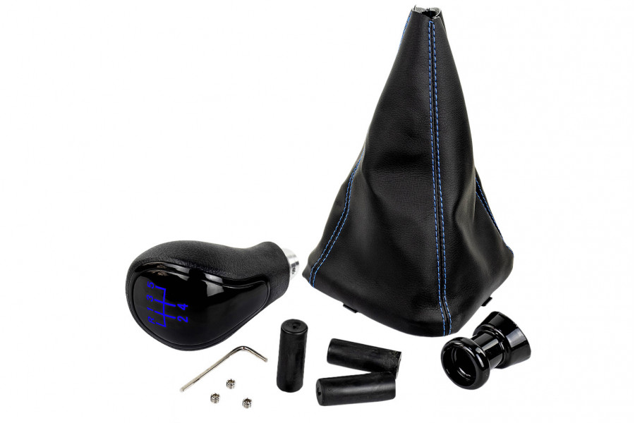 Ручка КПП черный лак с синей LED подсветкой и пыльником с синей строчкой для ВАЗ 2110, 2111, 2112