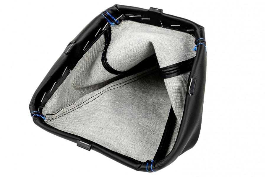 Ручка КПП изготовлена из прочного материала с эффектом черного лака, отличающегося надежностью и привлекательным внешним видом. Инновационная синяя LED-подсветка позволяет не только дополнить салон современным шармом, но и значительно упрощает эксплуатацию в ночное время. Гармонирующий с подсветкой синий шов на пылезащитном чехле дополняет общий дизайн, придавая завершённый и благородный вид.