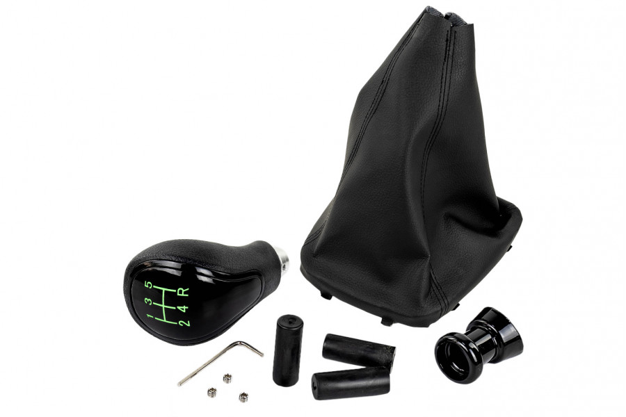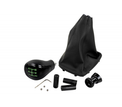 Ручка КПП черный лак с зеленой LED подсветкой и пыльником для Гранта, Гранта FL, Калина 2, Датсун с тросовым приводом