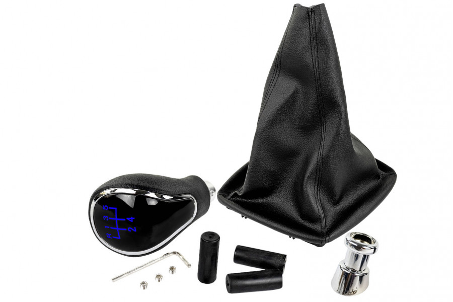 Ручка КПП хром с синей подсветкой и пыльником для Приора с кулисой (прямоугольный шток)