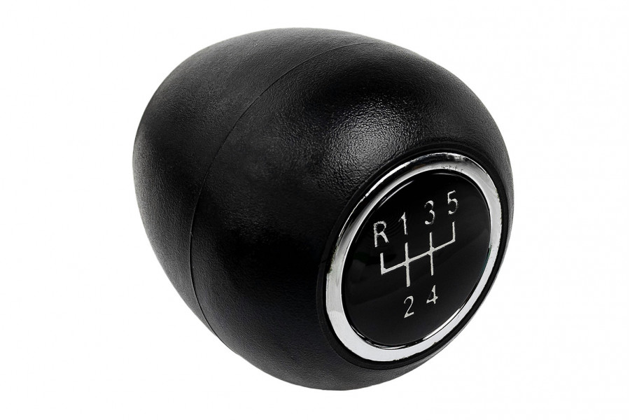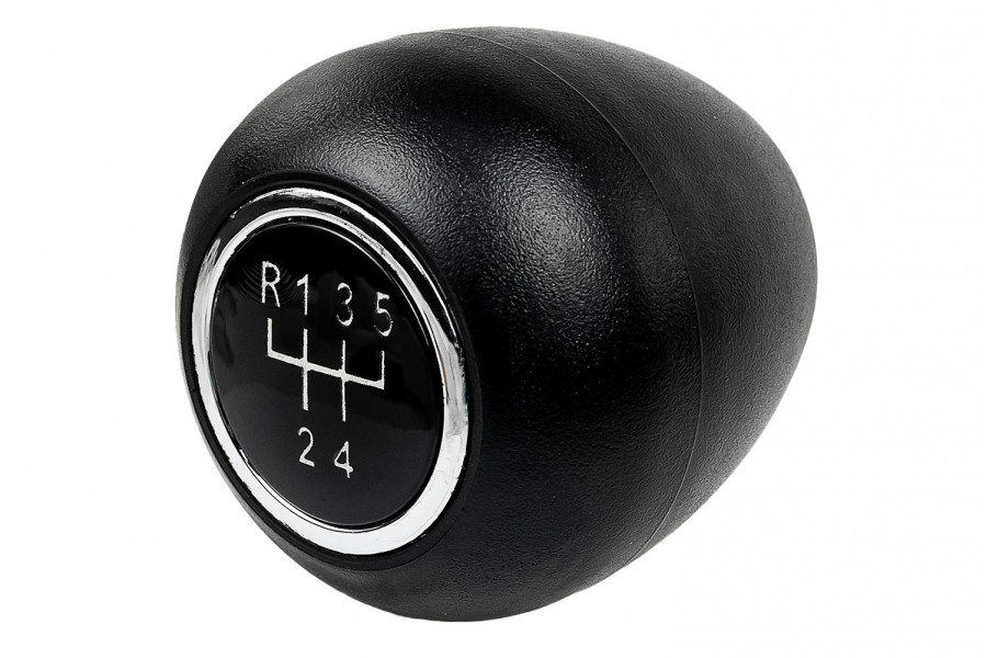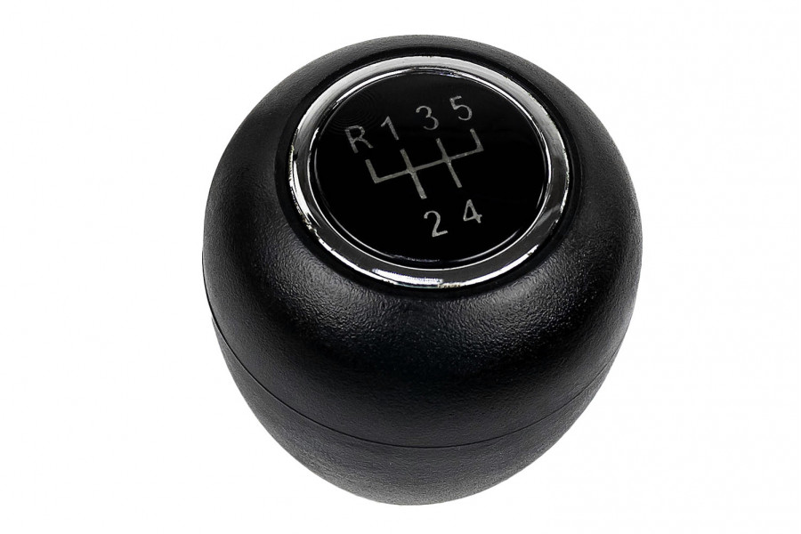 Круглая ручка КПП с кулисным приводом из черного пластика (шагрень) с хромированным кольцом на Лада Калина первого поколения.
