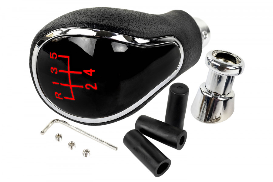 Ручка КПП в стиле Лада Веста с хромированной вставкой и подсветкой красного цвета для ВАЗ 2108, 2109, 21099, 2110, 2111, 2112, 2113, 2114, 2115, Лада Приора, Калина, Калина 2, Гранта с кулисой.
