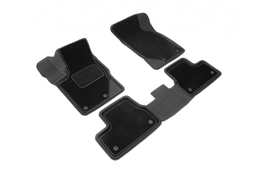 Комплект резиновых салонных ковриков со съемными ворсовыми вкладышами на удобных креплениях (клипсах) и регулируемым подпятником.