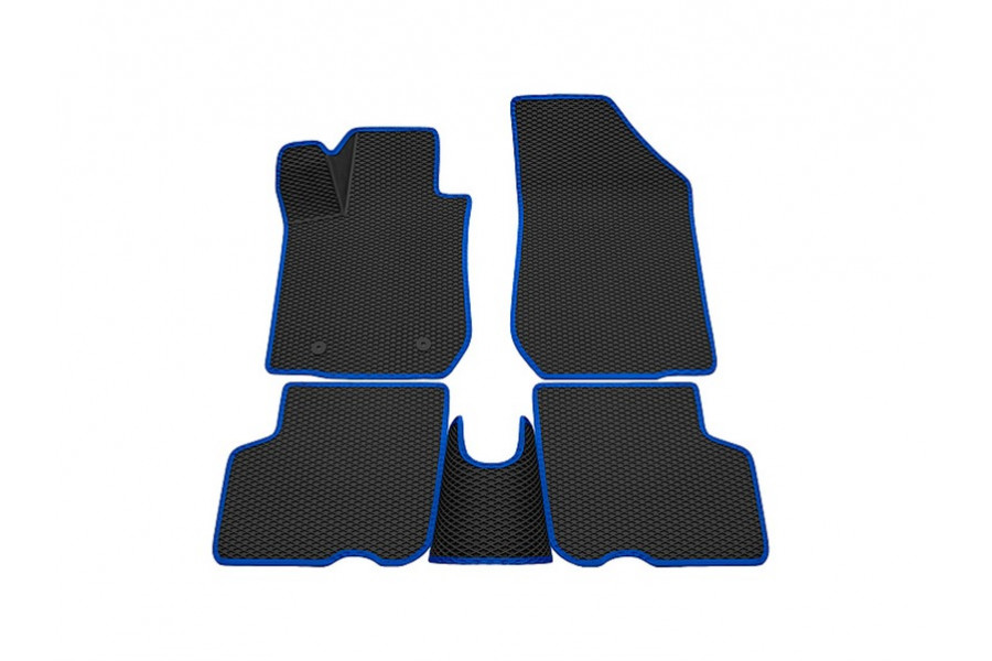 Салонные резиновые ковры Rezkon 3D в стиле EVA с ячейками Ромб и синим кантом для 5-местных Ларгус FL