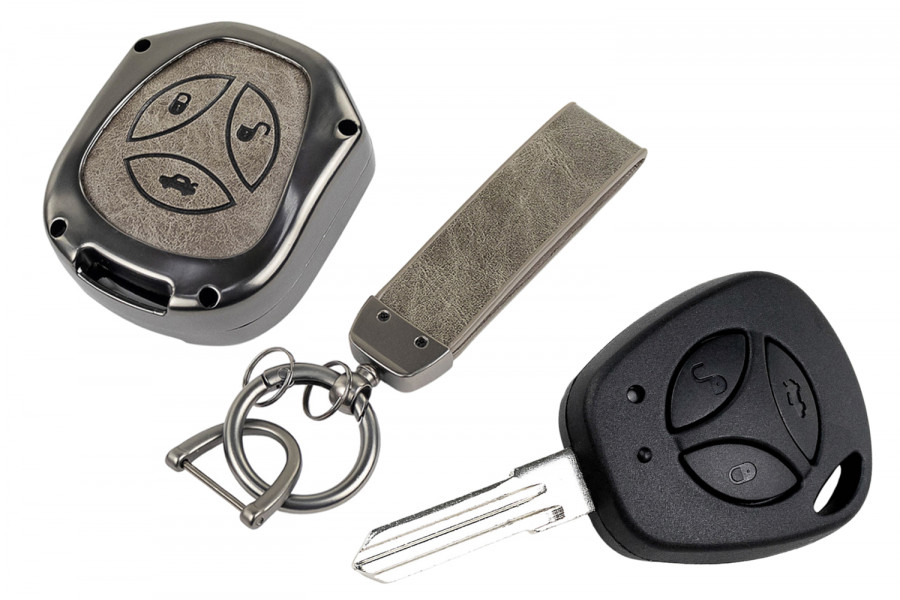 Алюминиевый чехол ключа с элегантной текстурой под серую кожу станет стильным аксессуаром для вашего автомобиля.