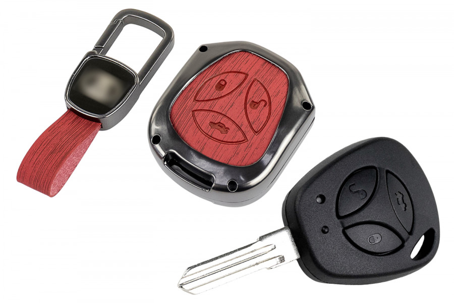 Алюминиевый чехол ключа с элегантной текстурой под красное дерево станет стильным аксессуаром для вашего автомобиля.