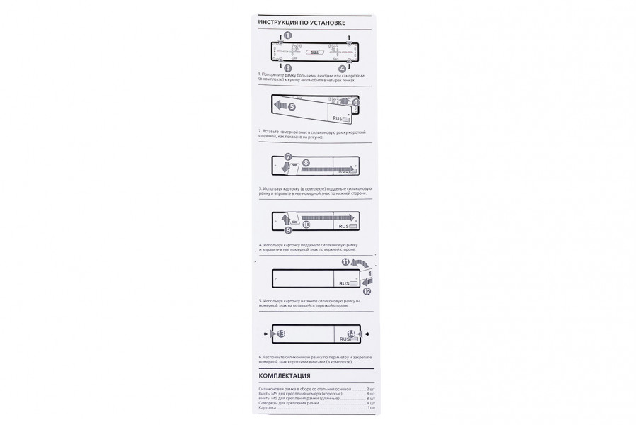 Подходит для всех номерных знаков Российского стандарта 52х12см.
