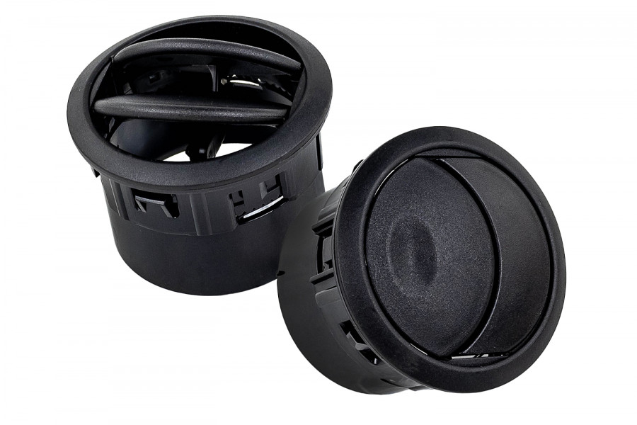Сопла воздуховодов с черными кольцами (2 шт.) предназначены для установки в салоне автомобиля на торпедо.