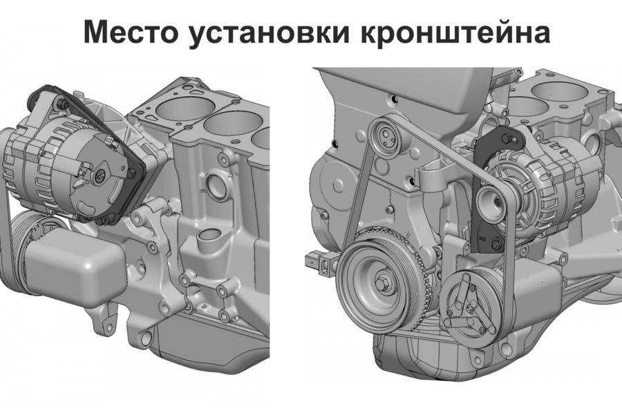 - Универсальный - является усиленной заменой кронштейнов генератора старого (2110-1041034-00, 2110-1041034-10) и нового (2110-1041034-20) образцов.