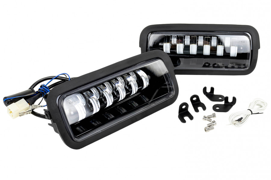 Комплектация: 2 подфарника, 2 рамки-уплотнителя, крепеж