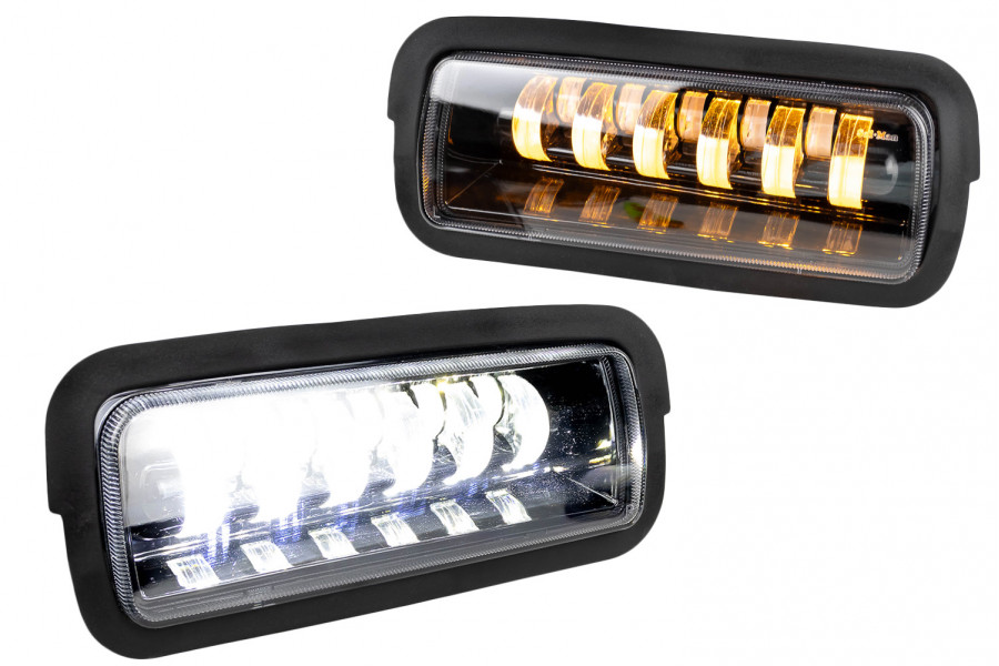 Светодиодные LED подфарники Sal-Man 11 полос с дальним светом, ДХО, динамическим поворотником, прожектором для Лада 4х4, Нива Легенд