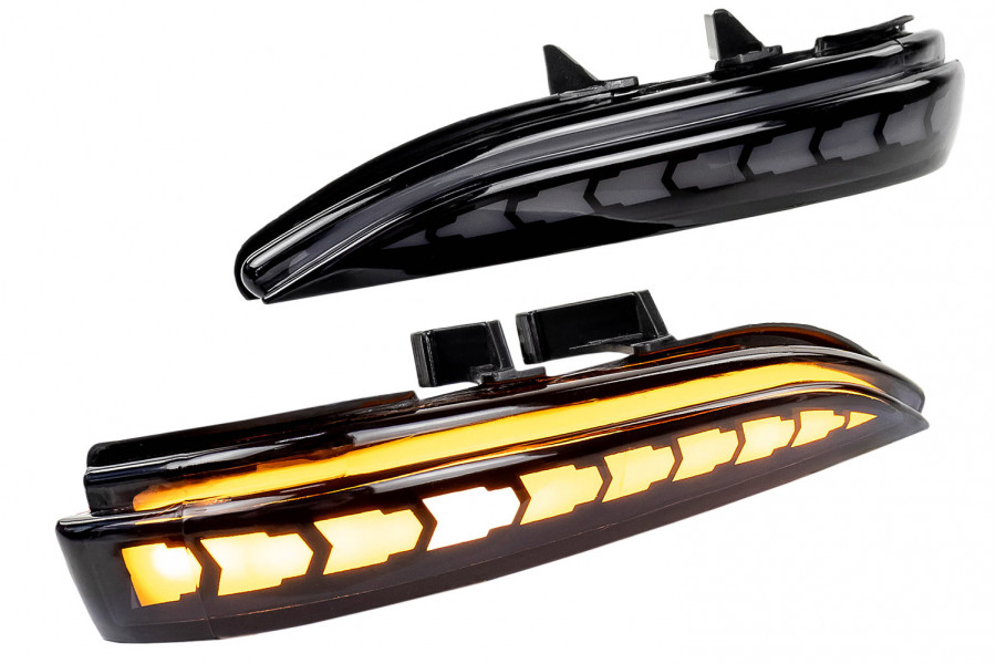 Стильные светодиодные повторители поворотов черного цвета модели N10 предназначенные специально для автомобилей с зеркалами образца 2015 года.