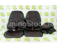 Экокожа с двойной цветной строчкой Ромб для перетяжки обивок дверей 4шт 70х30см