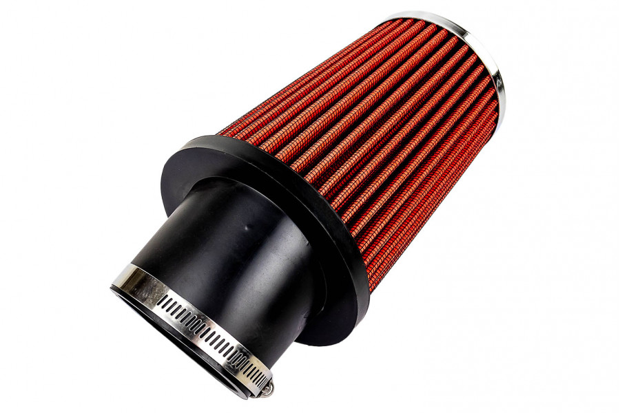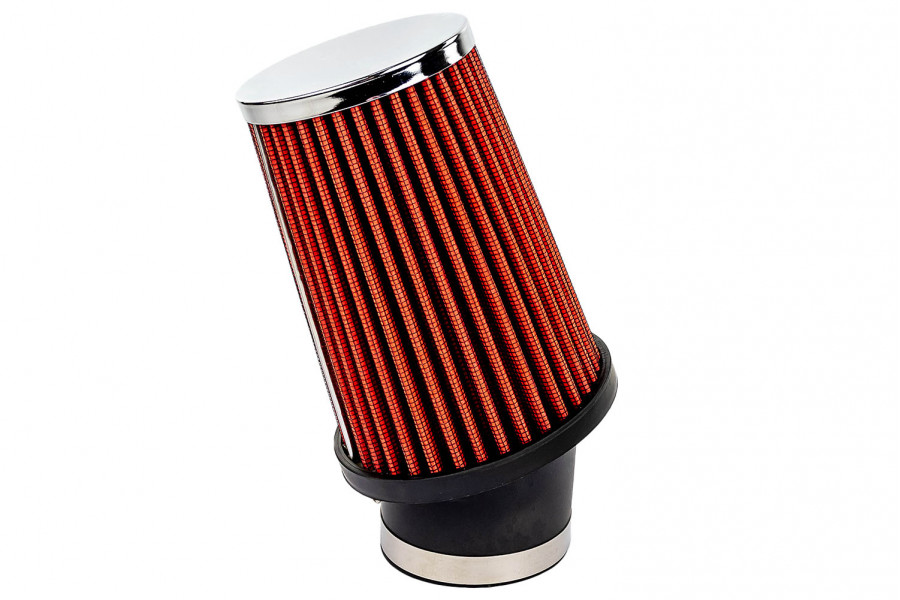 Угловой фильтр нулевого сопротивления закрытого типа красного цвета — оптимальное решение для тюнинга двигателя вашего автомобиля.