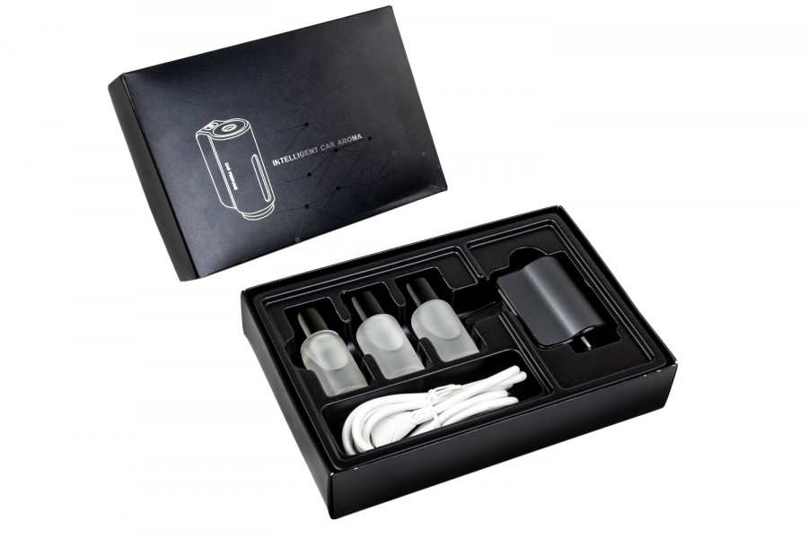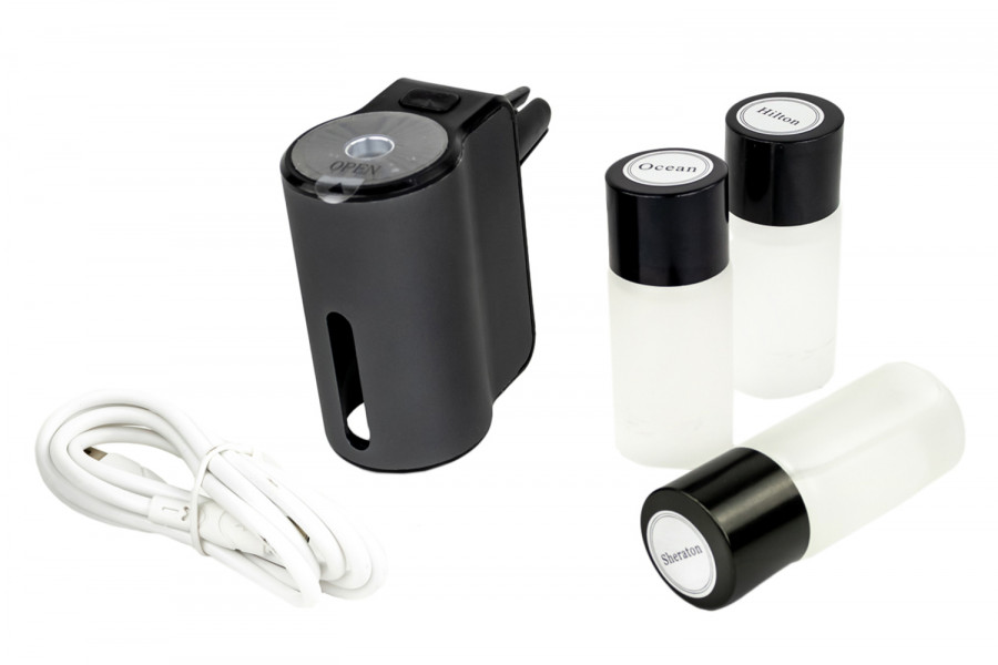 Усовершенствованный ультразвуковой ароматизатор для авто с технологией холодного распыления, преобразующий парфюмированную жидкость в мельчайший туман с использованием системы управления микроконтроллера и сменных флаконов с ароматом.