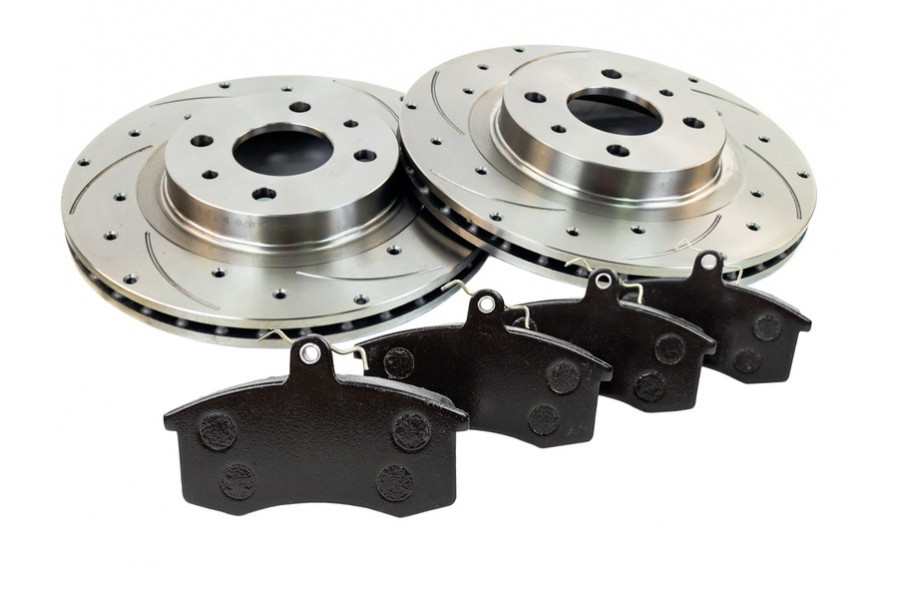 - Комплект: 2 тормозных диска, колодки (4 элемента)