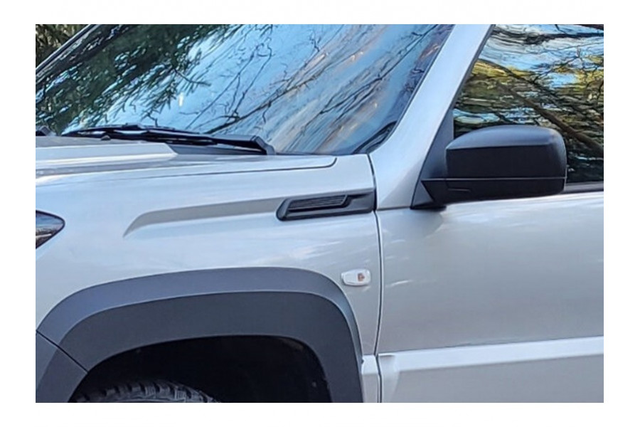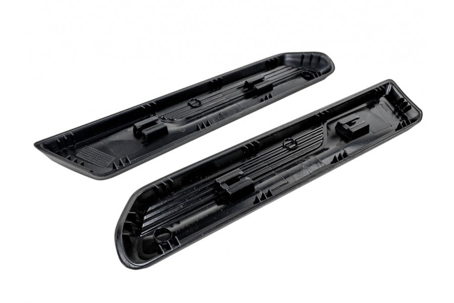 Вставки передних крыльев изготовлены из прочного ABS пластика, устойчивого к воздействию влаги и ультрафиолетовых лучей. Изделие полностью повторяет форму оригинального элемента кузова автомобиля, обеспечивая гармоничный внешний вид и защиту от механических повреждений. Комплектация: 2 вставки