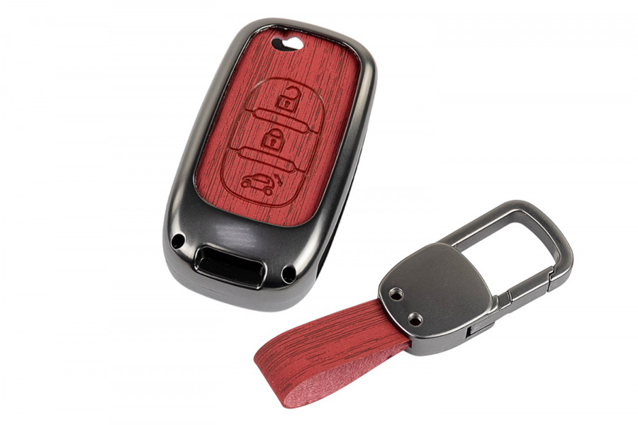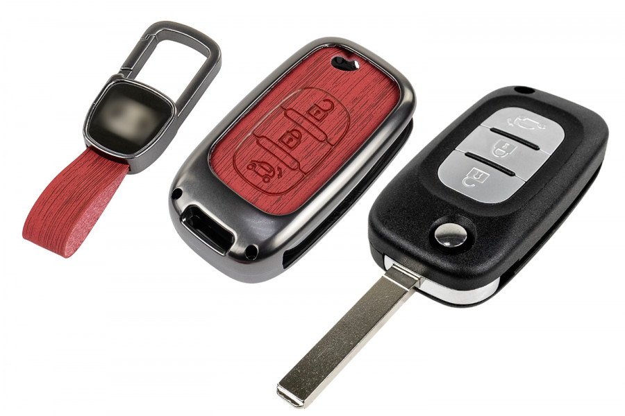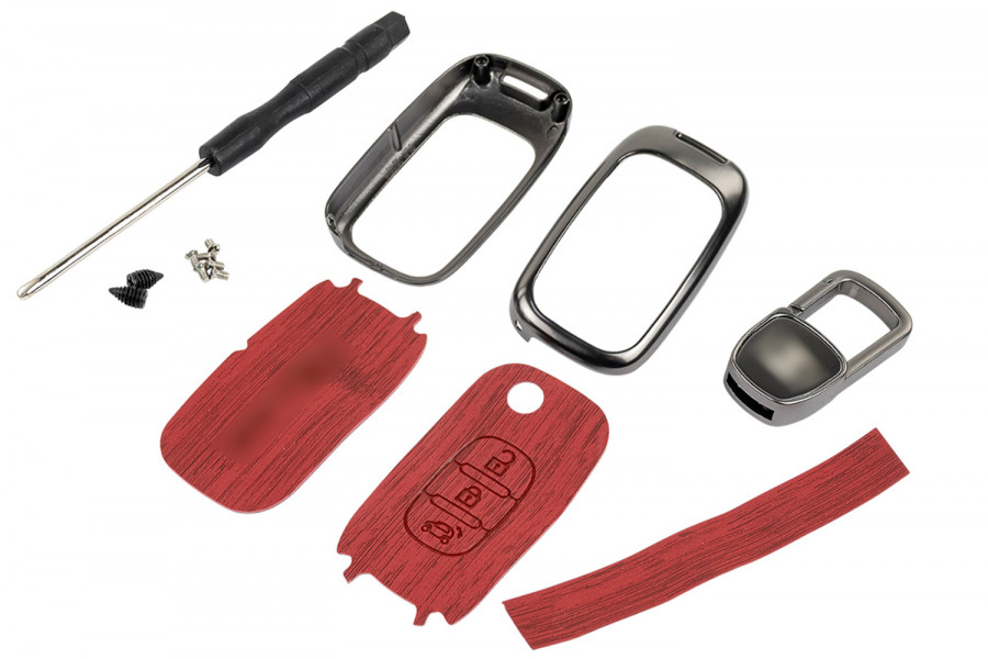 Ключ имеет выкидной механизм, что делает его удобным в использовании и практичным в хранении, а алюминиевый чехол ключа с элегантной текстурой под красное дерево станет стильным аксессуаром для вашего автомобиля.