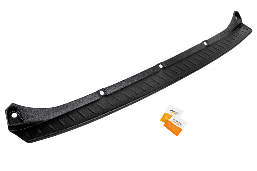 Накладка выполнена из прочного АБС-пластика, накладка надежно крепится к заднему бамперу, предотвращая появление сколов и трещин при погрукзке и разгрузке багажного отделения.
